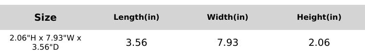 Entire Product System: 2.06" H x 7.93" W x 3.56" D (1.291 lb)