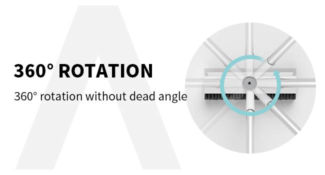 By continuously pressing the center button, you can freely rotate the floor scrub brush in a 360-degree direction. Every 90-degree rotation will produce a "click" sound, indicating the presence of a latch that allows you to lock the rotating angle in place.