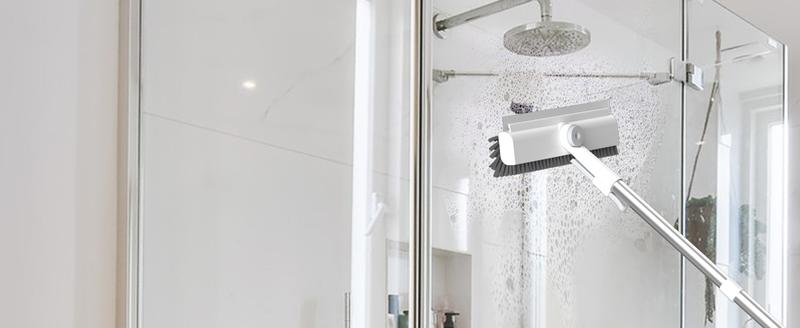 The other side of the floor brush indeed features a glass wiper, also known as a magic broom, made of silicone. This wiper effectively scrapes away dust and water stains from flat surfaces, helping to clean up any foam or dirt left behind after brushing the floor.