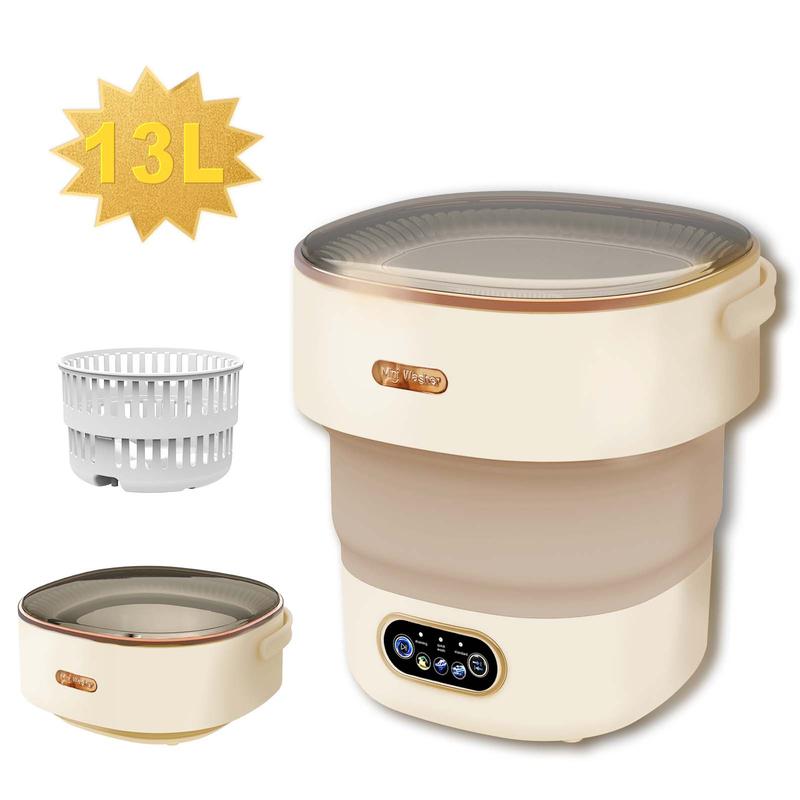 【Large Capacity】: Despite its compact size, it boasts a 13L washing capacity, accommodating small to medium-sized loads such as baby clothes, underwear, and socks.