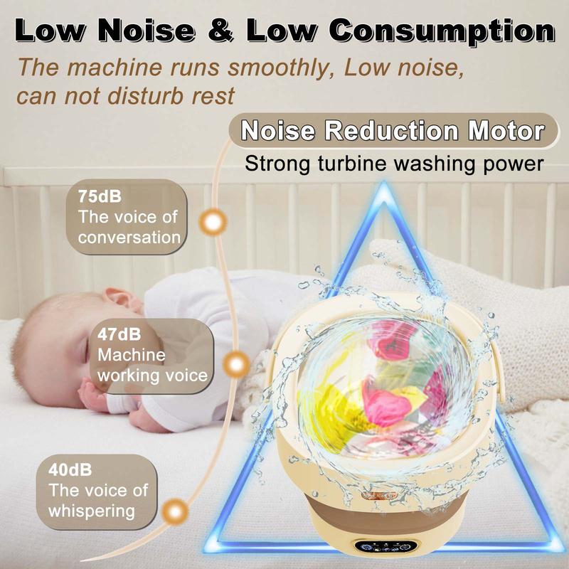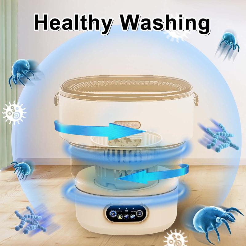 【Blue Light Disinfection】: This portable washing machine comes with a blue light disinfection feature, ensuring your clothes are not just clean but germ-free.