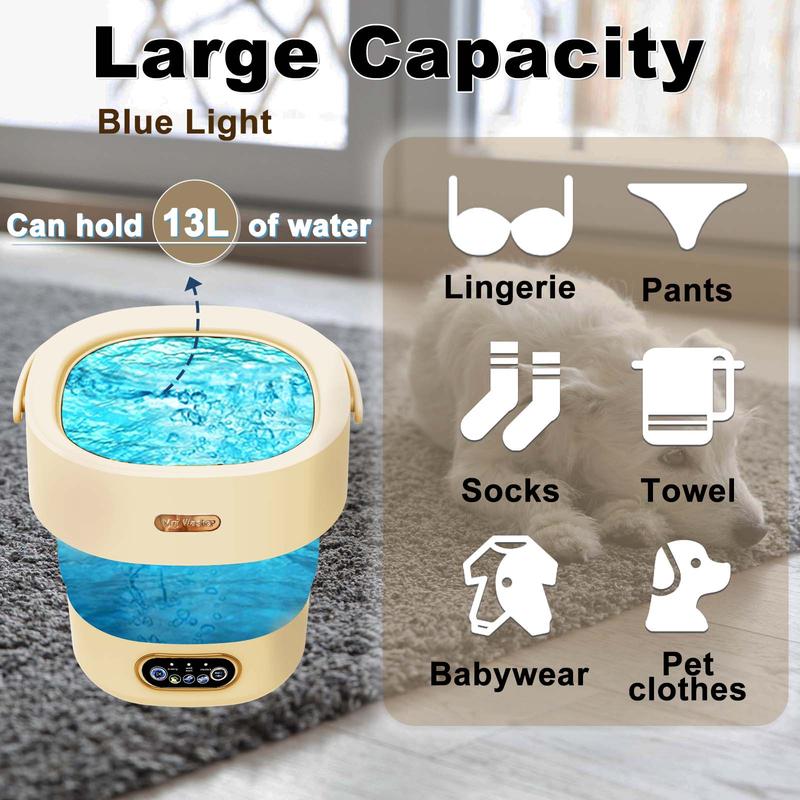 【Foldable and Compact】: Designed for space-saving and easy storage, this 13L capacity mini washing machine is foldable, making it perfect for travel and small living spaces.